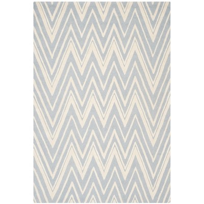 Elevate your living space with the sophisticated charm of our hand-tufted wool area rug, meticulously crafted in India. This 5'x8' medium rectangle rug features a harmonious blend of blue and ivory hues that will infuse your home with a serene and inviting atmosphere. The striking pattern, characterized by a captivating chevron design, adds a modern geometric touch that can complement a variety of decor styles, from contemporary to traditional.