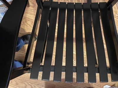 This black rocking chair checks all of the boxes: Stylish, well built, fairly priced, and easy to assemble. The packing material provided excellent protection during shipping. An installation video was available via QR code, but I found the written instructions to be easily understood, and did not need to watch the online version. In about 15 minutes I was done. The packet of hardware contained one spare of each type of bolt, screw, and plug. Although I did not need to use any of these spares, I hate coming up one piece short when trying to assemble an product, and having to wait days for the vendor to ship one tiny piece out to me. I found the chair comfortable to sit and rock in. I like the height of the seat. The chair back could possibly be one inch higher, but only because it's just a mite short for my husband, who is 6'3" tall.