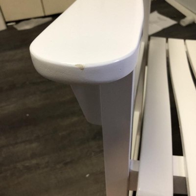My husband was able to put the chair together easily and quickly. However, when I looked at it after, I saw these marks on it from when he flipped it over to attach the rocking part. I am very disappointed it was so easily marked.