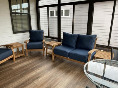 Patio teak deep seat patio set Absolutely love our new furniture set. The teak looks wonderful on our back deck and it was easy to put together. Only required one person to put together. The cushions are very well-made and comfortable to sit in. Looking forward to many years, enjoying the outside on our new furniture. makeover order # 10309703078 & review