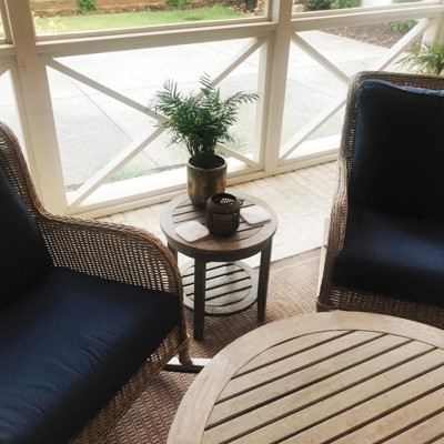 Love my new side tables. Just the right size and extra storage on the bottom shelf. It is also resistant to outdoor elements.