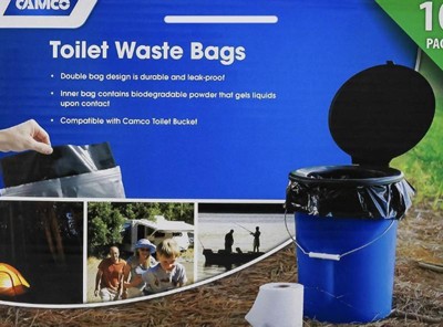 The waste bag can be used by itself or with the Camco Toilet Bucket when in the outdoors. A double bag design means a leak-free performance at any time of the day, whether you're on a campground or deep in the woods.