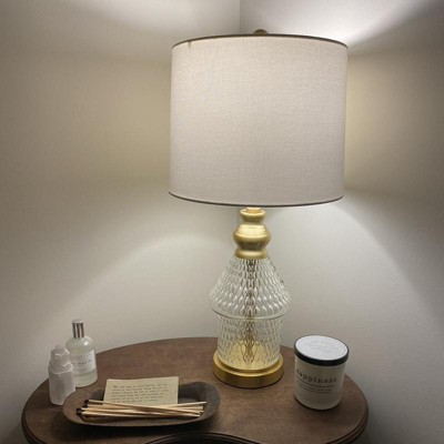 - Accent Table Lamp crafted with Glass, Iron, Cotton