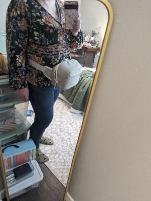A: Hi, thanks for reaching out about the Camera Sling Pack - heyday™ Beige Heather: Waterproof Woven Polyester The circumference of around 45 to 55 inches (114 to 140 cm) estimate for the length of the adjustable strap in the heyday bag. If you have any additional questions, we welcome you to contact MyTGTtech at 833-848-8324 every day between 7 am and 11 pm CST.