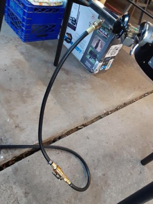 I bought my Explorer 14 3 years ago to add to my new RV. The RV has an outboard 1/2psi propane quick connect. I fabricated my own 3' quick connect hose from a store bought 3' long, 3/8" female flair hose. I fitted 1 end with a 1/4" male quick connect. A cupla extension hoses later , and I was in business. Have used it boondocking for 3 years. Love it!! Boils water in minutes for dishes. Cooks anything like a home gas stove easily and with good heat control.