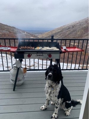 Pro 14 two burner cooktop Went to our inaugural Halloween bike ride and one of the guys pulled out a older version of the Pro 14 two burner cooktop and griddle. I couldn't believe how easily it setup, cleaned up and made a ton of food for every that came that day. It worked so well that my wife and I ordered one immediately to use on our own trips, gatherings and just some Sunday morning cookout fun. We also purchased the two burner griddle and griddle carrying bags for both the stove and griddle, so nice to keep everything neat and sorted. I've only used it a couple of times so far but one thing i really noticed was how nice the burner control is, you can turn it down all the way and not worry about the burner flaming out. My only complaint which is minor is that the flip out red lid covers don't sit completely flat like my friends did. Perhaps they will wear in with a bit more use.