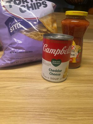 Looking for a quick easy yet flavorful snack, you got it in Campbells cheddar cheese soup. Pair it with salsa or use it in any of your favorite recipes.