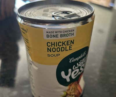 Actively nourish your positive lifestyle with the delicious flavors of Campbell's Well Yes! Chicken Noodle Soup. Each can of this chicken soup is made to satisfy with nutritious ingredients you could find in your kitchen, like tender chicken, carrots, egg noodles, celery and white beans in nourishing chicken bone broth. This soup packs a flavor-filled punch and 15 grams of protein per can. For delicious anytime nourishment, just pop this soup into a saucepan or microwave-safe bowl, heat and enjoy. Live Well, Eat Bright. Well Yes!
