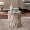 Add an organic touch to your living space with this eclectic end table. Mango wood crafts a drum-shaped design while a white-washed finish highlights the unique, handcrafted pattern. Slim round shaping lets this end table work in most rooms, even when space is limited. Station this artisan side table next to the sofa or your favorite reading chair as a stylish surface for drinks, books, and decor.