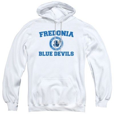 Men's Fredonia State University Official Blue Devils Logo Adult Pull-Over Hoodie White Large