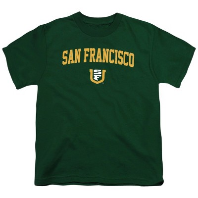UNIVERSITY OF SAN FRANCISCO OFFICIALLY LICENSED 100% POLYESTER ACTIVE SPORT KIDS T-SHIRT: Our officially licensed activewear shirts for kids features designs made in our lab with a winning mindset. Whether your little one is cheering for your team on game day hitting the playground or just enjoying some outdoor activities this children's tee has got them covered.
