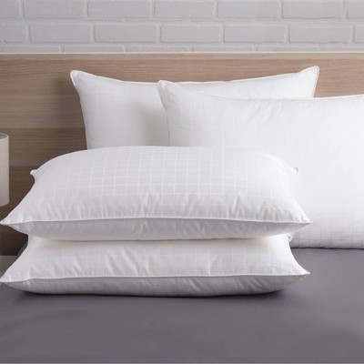 Classic design and simplistic luxury combine with this set of 2 medium density pillows available exclusively for Target. Thoughtfully crafted with soft and smooth 300 thread count cotton with a classic and modern dobby window pane design. This set of 2 pillows is filled with the lofty bounce back support of hypo-allergenic down alternative fiber. The medium density is ideal for side sleepers or those looking for medium support and a superior night of sleep.