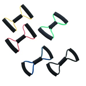 Lightweight, compact and portable, the tubing exerciser helps perform strengthening and conditioning workouts on-the-go, even in your hotel room! Two permanent foam covered rigid handles give the exerciser comfort and a firm grasp. CanDo is licensed to use the Thera-Band color sequence so resistance level is easily identified. The BowTie exerciser is available in 7 levels of resistance for progressive exercise and 3 lengths to accommodate different needs. Levels range in order of strength from least to greatest resistance: tan, yellow, red, green, blue, black, silver. Length represents length of tubing from end to end when unit is laid flat and is taut. CanDo low powder exercise tubing is made of natural rubber latex, which may cause allergic reactions