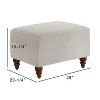 The Candor Ottoman is upholstered in neutral Sea Oat fabric that will blend well with many colors. Prop up your feet on this gorgeous ottoman with elegant solid wood turned front legs finished in a deep walnut stain, adding timeless appeal.Hardwood and plywoodCoil springs plus high density foam for comfort100% polyester fabric is easy to clean and maintainSolid wood turned legs in deep Walnut stain