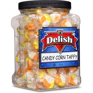 - FESTIVE HOLIDAY TAFFY CHEWS – Huge Eighteen (18 Oz) Ounces Bulk Container of Candy Corn Taffy Chews by Its Delish brand. Your taste buds will "go sweet and fluffy" when you treat them to our taffies. They'll be appreciated by kids and adults alike. Stock up for your pantry and upcoming events. – Approx. 18 Taffies per 4 Ounces