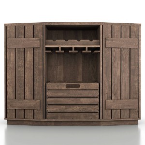 Provide wonderful countryside charm with the wood grain details and plank-style panels of the Vintage Walnut Buffet with Removable Crate. Store your favorite reds and whites in the top wine rack and hang glasses below for a well-organized home. The many shelves provide ample storage space for plates, bowls and more.