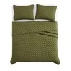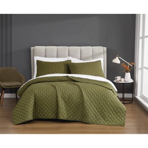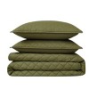 Cannon's solid cotton percale bedding collection is the ideal combination of luxury and durability. Offered in multiple colors, this bedding set will work with any bedroom and style. The tight percale weave in 100% cotton fiber produces a soft and smooth fabric with breathable cotton threads. Adding texture to the quilt is a diamond stitching with a two inch flange. This high quality quilt set has a thread count of 200 and is made to impress. The all season 100% down alternative fiber filling is just the right weight for all seasons. You can rest assured this program is made responsibly with OEKO-TEX Standard 100 Certification with certificate 14.HIN.38767 as certified by Hohenstein. Face and back are 200 thread count, 100% cotton percale weave for a nice crisp feel. The quilt is filled with 100% down alternative polyester filling for all season use. This item is machine washable, but please be sure to use appropriate sized machinery to avoid any excess wear on the items. Includes: one quilt 106 inches wide by 90 inches long and two king shams 20 inches high by 36 inches wide.