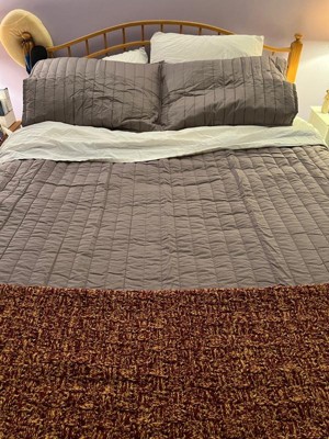 [This review was collected as part of a promotion.] I was so excited when influenster sent me multiple grey quilt options to choose from. There were quilts with horizontal, vertical, and diagonal, stitching details. I chose the quilt with the multiple diagonal stitching details on the quilt (as seen in my photo) but when the quilt was shipped to my house it was not what I had requested. The one with the vertical stitching is what came. I was disappointed and sent influenster an email but received no response. Since I hadn’t heard anything for a while I decided I had to just review what I was given. Overall it is actually a lovely quilt. The quality of the percale is pretty nice and it sleeps pretty light weight. It would be perfect had it come with cotton batting in between instead of polyester but that’s a personal preference. The shams are easy to put on as well. The quality of the stitching (quilting) looks great too and I hope it lasts me a long time. My only complaint about the bedding is that when opening up the package it came with a slight odor which dissipated quickly after one night. Normally I would wash before putting on my bed but I was excited to review. Overall, I would recommend the Cannon Solid oversized percale Grey Full/Queen 3 Piece Quilt Set.