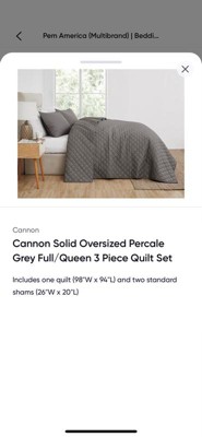 Cannon 3pc Full/Queen Oversized Percale Quilt Set Gray