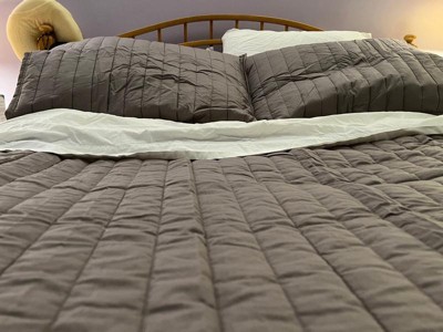 [This review was collected as part of a promotion.] The canon solid oversized percale grey 3 piece quilt set is so amazing. It has two pillow covers. It is super comfy and nice. It was perfect for my bed. I loved it.