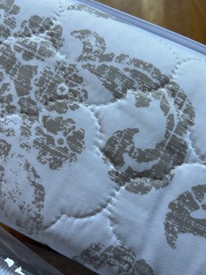 The Sylvana Jacobean quilt set by Cannon combines a romantic floral design using soothing colors to enhance the serenity of your bedroom. A soft and subtle print of cool toned taupe florals on a white background is contrasted by the solid cool toned taupe reverse, while matching sham(s) continue the pattern and complete the look of the bed. The 100% microfiber fabric is smooth and silky with a cotton/polyester filling that is secured in place with a special multi needle quilting method. Pair this quilt set with your favorite Cannon sheets and your new bedding set is complete!Includes one quilt (68"W x 90"L) and one standard sham (20"W x 26"L)Fabric is 100% microfiber with a weight of 85 GSM with a 50% cotton 50% polyester fillThis item is manufactured and imported from China.