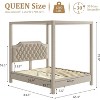 Canopy Bed Frame with Upholstered Headboard, Four Poster Design, Button Tufted, and Slide Rail, No Box Spring Required, Wooden Slatted Structure