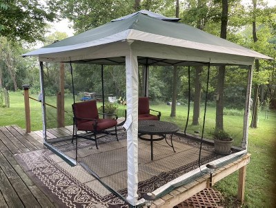 This screen tent withstood 74 mph derechos wind. We had trees down every where but thing stood perfect