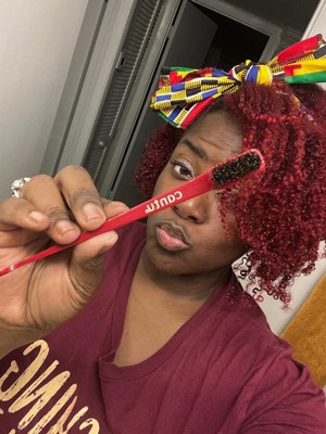 The Cantu Baby Hair Edge Styler Brush is the hair accessory made to make laying your edges easier than ever with its 2-in-1 design. This styler features a comb side that is ideal for protective styling, separating your baby hairs, and sculpting your edges. The firm boar bristles smooth hair and distribute natural oils for an enhanced natural shine you’ll love. To use, start by using the comb side to separate your baby hairs, then use the brush side to shape your edges the way you like.