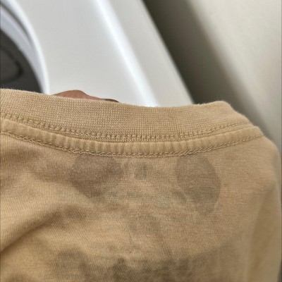 I have been using this product for years on my daughter. We noticed her clothes kept getting dark stains on it , but it hadn’t occurred to me it could be this product. I changed my washer, detergent, and softner. My husband suggested it could be this product so we tested it out on one of my shirts and at first nothing happened, but after a few days the black marks appeared. I have so many ruined shirts. The beige shirt was our test subject.