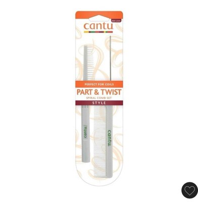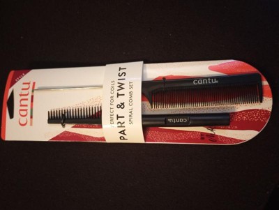 Create coils with ease with the Cantu Style Part & Twist Spiral Hair Comb Set. Featuring a specially designed spiral comb to shape your coils to perfection and a metal end comb for super precise parting and smoothing, this set is all you need to get gorgeous coils. We recommend cleansing your hair first with Cantu Sulfate-Free Cleansing Cream Shampoo and Cantu Sulfate-Free Hydrating Cream Conditioner. Then, when it comes to styling, start by parting your hair with the metal end comb into small sections. Then, add product. We recommend using Cantu’s Curl Activator Cream & Styling Gel. Afterwards, spiral comb sections starting at the root then twirling down to the ends.