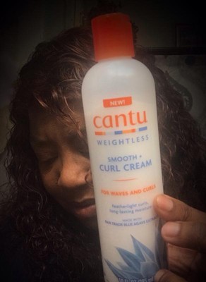 [This review was collected as part of a promotion.] Cantu weightless smooth + curly cream is amazing! Made with blue agave to promote stronger, smoother, healthier hair. Smells so clean and the texture is super lightweight. Easy to squeeze bottle. I love how this cream feels In my hair.