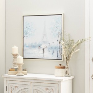 Olivia & May Canvas Eiffel Tower Framed Wall Art with Silver Frame Blue: Transitional Style, Vertical Orientation, Keyhole Mount