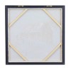 - A framed canvas art crafted of solid wood, polystone, and canvas materials