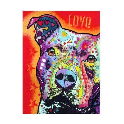 This Dean Russo Thoughtful Pit Bull canvas art by Art licensing International is sure to complement any room décor with its Animals style featuring a depiction of a dog with a floral background.