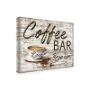 This ready to hang, gallery-wrapped Wall Décor Living Room Canvas by Trademark Fine Art features a sign for a coffee bar. that'll look great in any bedroom, kitchen, bathroom, or apartment. Whether it's contemporary, rustic, modern, or traditional style wall décor, Trademark Fine Art offers a variety of high-quality, carefully built wall art that will surely complement any style with art themes that range from fascinating abstracts to breathtaking landscapes. Each bathroom wall art canvas is printed on durable cotton poly blended canvas using Giclee, a process for creating high-quality fine art reproductions that are nearly indistinguishable from the original piece. From the bedroom to the living room, or even the office, Trademark Fine Art makes professionally handcrafted, ready to hang wall décor that will be admired for years to come.