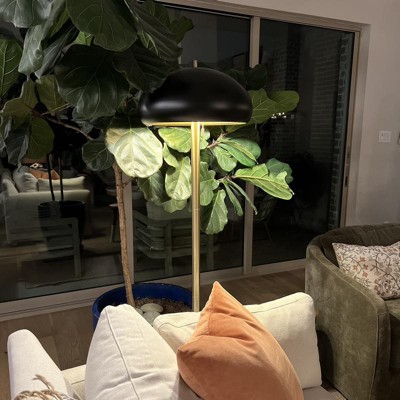 Adesso Cap Floor Lamp Black : Mid-Century Design, Dual Pull Chain Switches, ETL Listed, Metal Dome Shade with Gold Interior