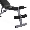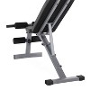 Built to handle heavy weight safely and securely, the CAP Strength Adjustable FID Bench can handle heavy loads and workouts. This exercise bench is both functional and compact, so you can get the benefits of a wide range of movements for nearly all your muscle groups, even if you only have a small space to use. The padded leg rests make this bench ideal for doing dumbbell and abdominal exercises. Easily adjust the backrest for flat, incline or decline positions for options targeting the chest or intermediate and advanced crunch exercises. This functional, compact and durable tool offers all the flexibility you need to get the benefits of resistance training in a streamlined setting. Its construction includes a steel frame, high-density upholstery and a powder-coated finish to ensure ample durability. The feet on the base contribute to stability.