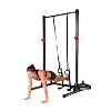 The CAP Strength Power Rack Exercise Stand is loaded with comfort and safety features. The main frame is constructed from 12- and 14-gauge steel. All tube seams are welded to provide additional strength and stability. The overhead workout station is constructed from high-grade tubular steel, which is fully welded to mounting plates with mini gussets for extra-reinforced support. All open frame ends are capped for safety and to prevent inner oxidation. This is an all-inclusive choice for those who desire the safety and functionality of a lifting cage while incorporating additional features that allow the unit to be used as a body weight station or as a resistance training tool. Perfect to use for weightlifting, the included bar catches can be used to assist while performing squats, dead lifts, curls and more. The reinforced overhead workout bar can be used for bodyweight training. Use the upper workout bar as an anchor for suspended training products like ab straps and rings or use with resistance bands.