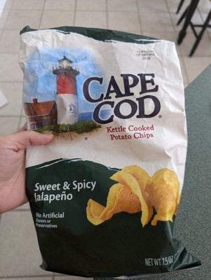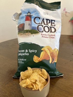 [This review was collected as part of a promotion.] The Cape Cod Sweet and Spicy Jalapeno chips are delicious. A great blend of sweet and spicy and they have just the right amount of seasoning and flavor. I don't usually like kettle chips because they can be too hard, but these were more in between a regular chip and a kettle chip. Overall these are a 5/5 for me.
