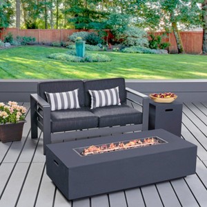 Cape Coral 3pc Aluminum and Rectangular MGO Fire Table Set - Gray - Christopher Knight Home: Outdoor Chat Set with Propane Firepit