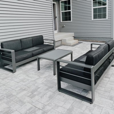 Cape Coral 3pc Metal Patio Sofa Set with Cushions - Gray/Dark Gray - Christopher Knight Home