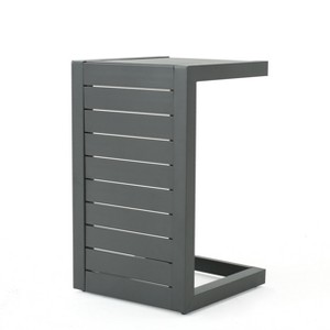Cape Coral Aluminum C-Shaped Side Table - Gray - Christopher Knight Home: Weather-Resistant, Square Patio End Table, 24" Height