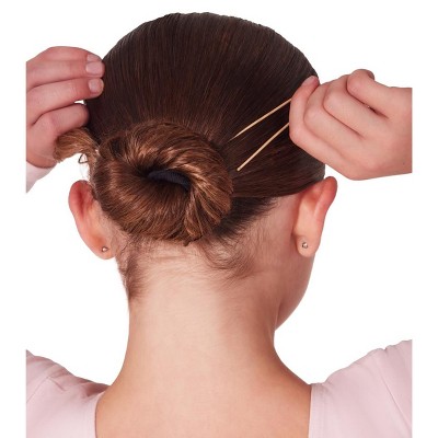 2.5" Hairpins Giving you the confidence you need to perform at your best, the Bunheads® Hair Pins are exclusively designed to keep a dancer's hair in place all day long. Made from 100% solid steel, these hairpins are designed to hold even the thickest and heaviest hair securely in place. The round smooth finish at the ends prevents any scratching, making them gentle on the scalp. Each package contains 12 hairpins. With three different sizes and colors to choose from, you can find the perfect size to match your hair type and style. Product Features: