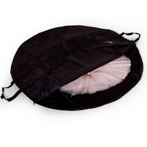 Tutu Bag No more wrinkled tutus! This bag is designed with ballerinas in mind. Featuring an interior strap to hold the tutu in place and a zipper closure to keep the tutu protected at all times. The signature Leaping Lena logo will not go unnoticed in the studio. An essential piece to make sure your tutu stays performance-ready! Product Features: