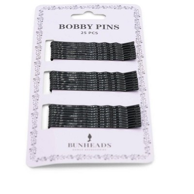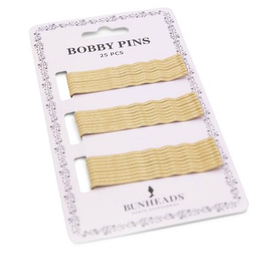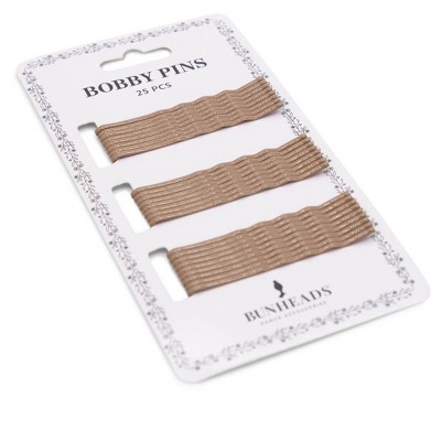 Bobby Pins Keep your hair styled to perfection Bunheads® Bobby Pins. Made from 100% metal, these bobby pins feature a double-coated design that ensures they grip hair firmly and stay in place all day long. Available in four different shades, making it easy to find a color that matches your hair. With 25 bobby pins per package, you'll have enough to use and enough to share! Product Features: