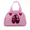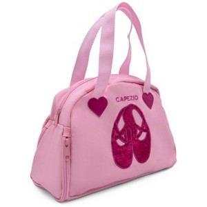 Pretty Tote The Pretty Tote is an essential accessory for any young ballerina. This pink bowler-shaped bag is stylish and practical and made from 100% polyester. Measuring 9 inches in height, 11 inches in width, and 4.5 inches in depth (22.8cm x 28cm x 11.4cm), this tote bag is the perfect size for carrying all your dance essentials. It features a beautiful reversible sequined ballet shoe design on the front, complete with a light pink Capezio® logo above it. The sequins add a touch of sparkle and glamour to the bag, making it perfect for young dancers who love to stand out. Fully lined for added security, ensuring your dance items are kept safe and protected. Additionally, there is a zippered side compartment for storing smaller items such as hair accessories, bobby pins, and other small items. Product Features: