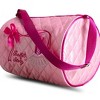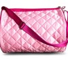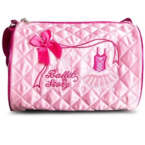 Embroidered Barrel Bag The Embroidered Barrel Bag is perfect for every little dancer. Featuring an adjustable shoulder strap for a custom fit. The quilted design is comfortable to carry with embroidered tutu detail that adds flare. The inner mesh pocket with two additional pocket slots keeps all your accessories organized. Metal ballerina zipper pulls for subtle added detail. Product Features: