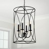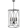 Designer details and circular forms dial up the drama with the Amara Foyer. Thewrapped accent in a brass tone adds a layer of unexpected dimension and the Matte Black finish punctuates the personality of any space. DIMENSIONS: Overall: 19"W x 30"H; Adjustable Hanging Height: 34" - 156"; Includes 120" of chain and 180" of wire. DETAILS: The tapered, wrapped-look accents are hand painted in a brass tone. FINISH: Matte Black is a neutral, dark, flat black, which is paired with a wrapped-look, textured brass accent. BULBS: Designed to be dimmable and LED/CFL/Incandescent bulb compatible, this fixture uses 4 - 60 Watt (max) E12 Candelabra base bulbs (not included). It's shown here with a G16 lamp. FEATURES: Rated for dry locations; includes a 1-Year Manufacturer Warranty. Mounting Direction: Up Canopy Included: Yes Canopy Diameter: 5.00 Chain Length: 120.00