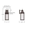 Transitional meets modern with the Bradford Low Light Small Wall Lantern. The bold lines and an oversized ring in a Black finish adds classic curb appeal to your home. This fixture is designed for minimal light emissions and is part of ourRain or Shine Collection and backed by our five-year warranty. DIMENSIONS: Overall: 6"W x 17.25"H x 7.5"E; Backplate: 4.75"W x 6.25"H x 0.75"E DETAILS: The tapered top and oversized ring paired with Clear Glass panels create a transitional and modern look. The Night Sky friendly fixture is designed for minimal light emission. Bottom is open for easy access to bulb. FINISH: Part of the Rain or Shine series, the Black finish is a neutral, dark tone with a slightly coarse texture. BULBS: Designed to be dimmable and LED/CFL/Incandescent bulb compatible, this fixture uses 1 - 7 Watt (max) GU10 Twist Lock base bulbs (not included). It's shown here with a GU10 lamp. FEATURES: Rated for Wet locations; includes a 5-Year Manufacturer Warranty Against Rust an