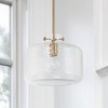 The unique pebble detailing of the glass cloche on the 1-Light Pendant in Matte Black gives an artisan touch to the classic silhouette. APPLICATIONS: Rated for dry locations, perfect for a hallway/stairway, foyer/entryway, kitchen, home office, dining room, living room or bedroom. The time-honored beauty of this matte black pendant emphasized by clear pebbled glass EASY TO INSTALL: Replacing an existing fixture is easy with the included instructions and can be finished in as little as 15 minutes with a few simple hand tools. VERSATILE: Dimmable and LED/CFL/Incandescent compatible, uses four 100-Watt (max) E26 medium base bulbs (Not Included) DIMENSIONS: Adjustable Height (from 16.75 inch to 60.5 inch), 11.50 inchW x 10 inchH; includes 1' of chain, 10' of wire and one each 6 inch, 12 inch and 18 inch removable rods RELIABLE: Includes 1-Year Limited Manufacturer's Warranty. Warranty: 1 Year Room Recommendation: Kitchen/Bathroom/Home Office/Powder Room/Dining Room/Foyer/Entryway No. of